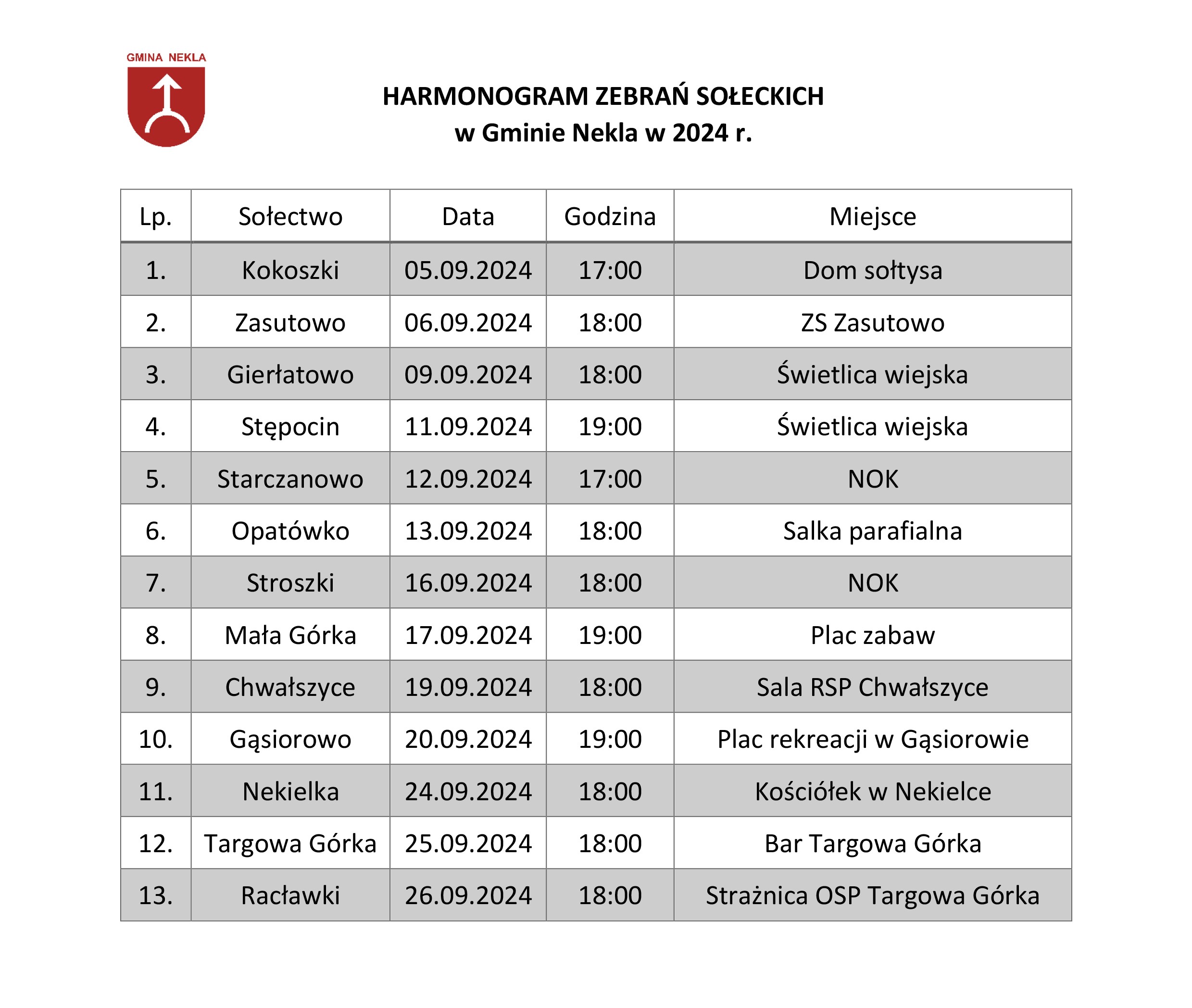 Harmonogram zebrań sołeckich w Gminie Nekla